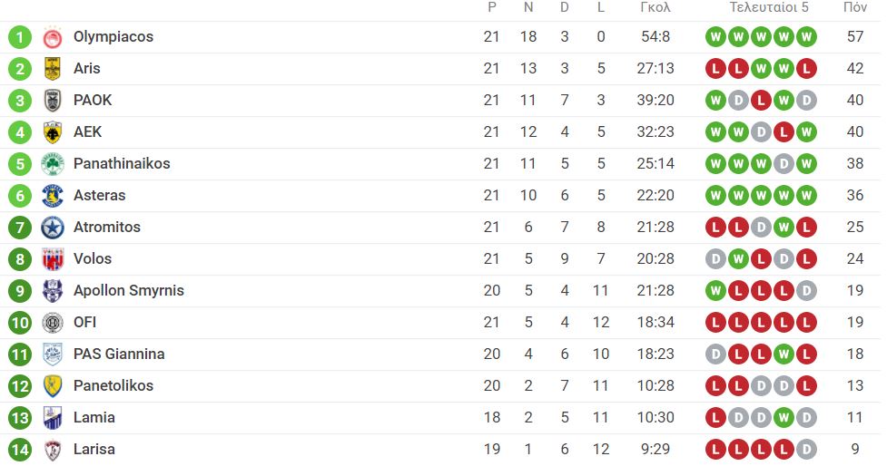 Ο Παναθηναϊκός – που αποτελεί την 3η πιο φορμαρισμένη ομάδα του πρωταθλήματος μετά από Ολυμπιακό και Αστέρα Τρίπολης – παραμονεύει στους 2 βαθμούς απόσταση, με τον ΑΕΚ – ΠΑΟ να έχει οριστεί για τις 28 Φεβρουαρίου (19:30).