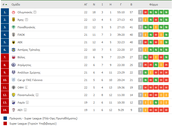 Δείτε τον πίνακα της Super League: