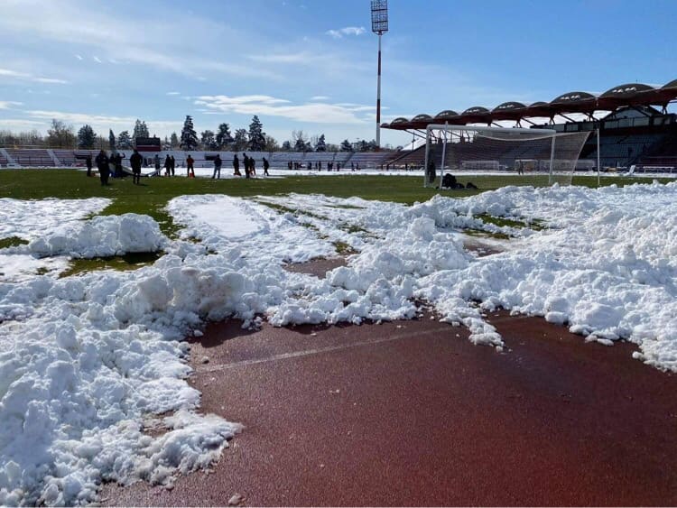 Η ταλαιπωρία που έχει υποστεί η αποστολή της ΑΕΚ στη Λάρισα ίσως να λάβει τέλος απόψε καθώς το γήπεδο της Λάρισας μετά τον καθαρισμό του δείχνει σε καλή κατάσταση ενώ το χιόνι έχει ήδη μειωθεί, με τον ήλιο φυσικά να βοηθάει πολύ σε αυτό. Η καθαρισμός θα έχει ολοκληρωθεί μέχρι το μεσημέρι, ενώ η σύσκεψη στο Αλκαζάρ και οι συζητήσεις για τη διεξαγωγή του παιχνιδιού δείχνουν ότι το απόγευμα θα έχουμε ματς!