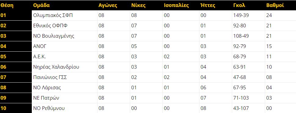 Η βαθμολογία της Α1 Εθνικής: