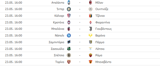 Το πρόγραμμα της τελευταίας αγωνιστικής της Serie A: