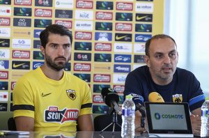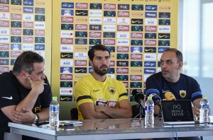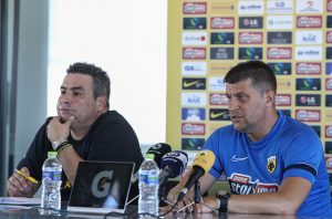 Βλάνταν Μιλόγεβιτς και Καρίμ Ανσαριφάρντ ήταν οι δυο της ΑΕΚ που συμμετείχαν στην συνέντευξη τύπου.