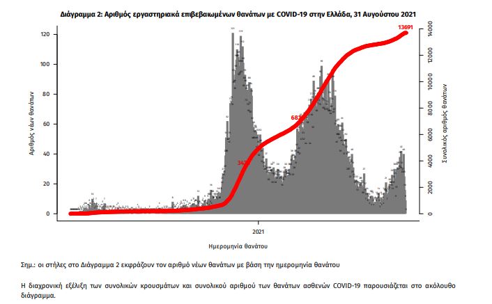 Οι νέοι θάνατοι ασθενών με COVID-19 είναι 22, ενώ από την έναρξη της επιδημίας έχουν καταγραφεί συνολικά 13.691 θάνατοι. 3 Το 95.3% είχε υποκείμενο νόσημα ή/και ηλικία 70 ετών και άνω.