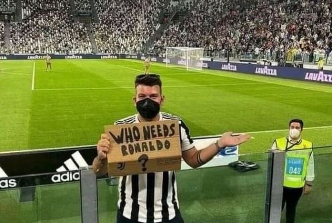 Ένας οπαδός της Γηραιάς Κυρίας φαίνεται να μην τον πείραξε ιδιαίτερα αυτό και αποφάσισε να το δηλώσει και δημόσια, γράφοντας σε ένα χαρτόνι «Ποιος χρειάζεται τον Ρονάλντο;»