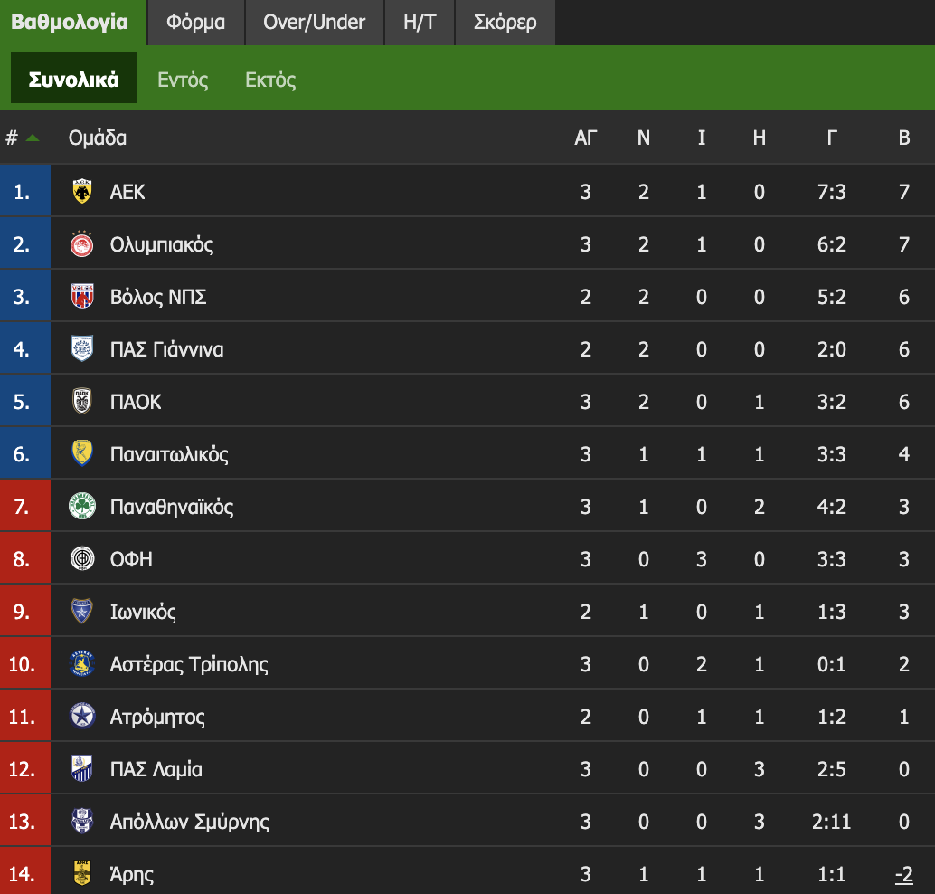Δείτε την βαθμολογία έτσι όπως έχει διαμορφωθεί μετά τα σημερινά αποτελέσματα της 3ης αγωνιστικής της Super League