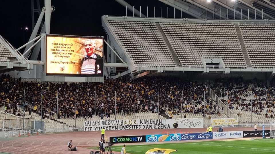 Το συγκλονιστικό μήνυμα του μεγάλου Στέλιου Σεραφείδη προς τον κόσμο της ΑΕΚ: «Κύριε πρόεδρε Μελισσανίδη, σας ευχαριστώ όπως και το επιτελείο των γιατρών του κ. Πάρη Κοσμίδη και τους συνεργάτες του. Αδέρφια ΑΕΚτζήδες, θεώρησα σωστό από αυτό το βήμα της ΑΕΚ για αυτή τη μικρή επανάσταση προς το πρόσωπό μου να σας ευχαριστήσω από καρδιάς για το μεγαλείο της ψυχής σας. Μου δώσατε λίγη ζωή και είμαι καλύτερα! Πάμε όλοι μαζί για την ΑΕΚάρα μας». Η ΑΕΚ με τη σειρά της του απάντησε: «Εμείς σε ευχαριστούμε κύριε Στέλιο που είσαι και θα συνεχίσεις να είσαι κοντά μας».