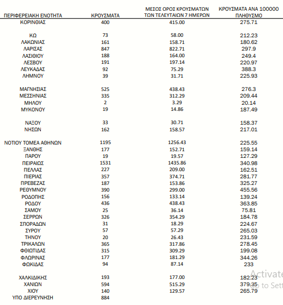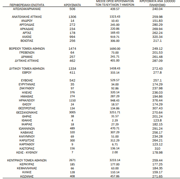 Κεντρικός Τομέα Αθηνών: 2671 κρούσματα