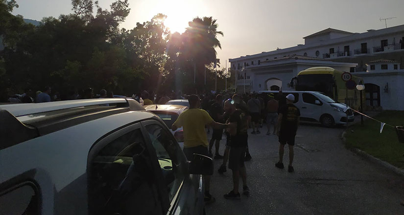 Η αποστολή της Ένωσης, αναχωρούσε εκείνη την ώρα για το ΔΑΚ Λαμίας και ο κόσμος της ομάδας, έστησε ένα μικρό πάρτι, με συνθήματα και καπνογόνα.