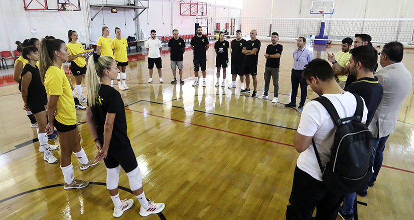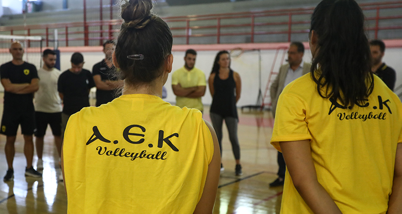 Τις αθλήτριες της ΑΕΚ, καλωσόρισαν ο πρόεδρος της Ερασιτεχνικής, Αλέξης Αλεξίου, ο γενικός αρχηγός του Σωματείου, Ηλίας Χατσίκας και ο διοικητικός υπεύθυνος του τμήματος, Λευτέρης Αρχόντης.