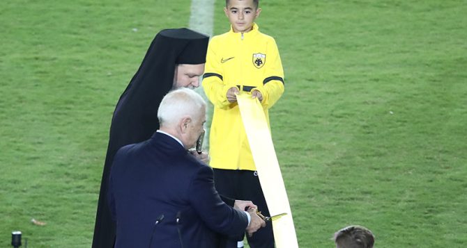 Ο Δημήτρης Μελισσανίδης, μαζί με τον Μητροπολίτη Γαβριήλ, έκοψαν την κορδέλα του νέου γηπέδου της ΑΕΚ.