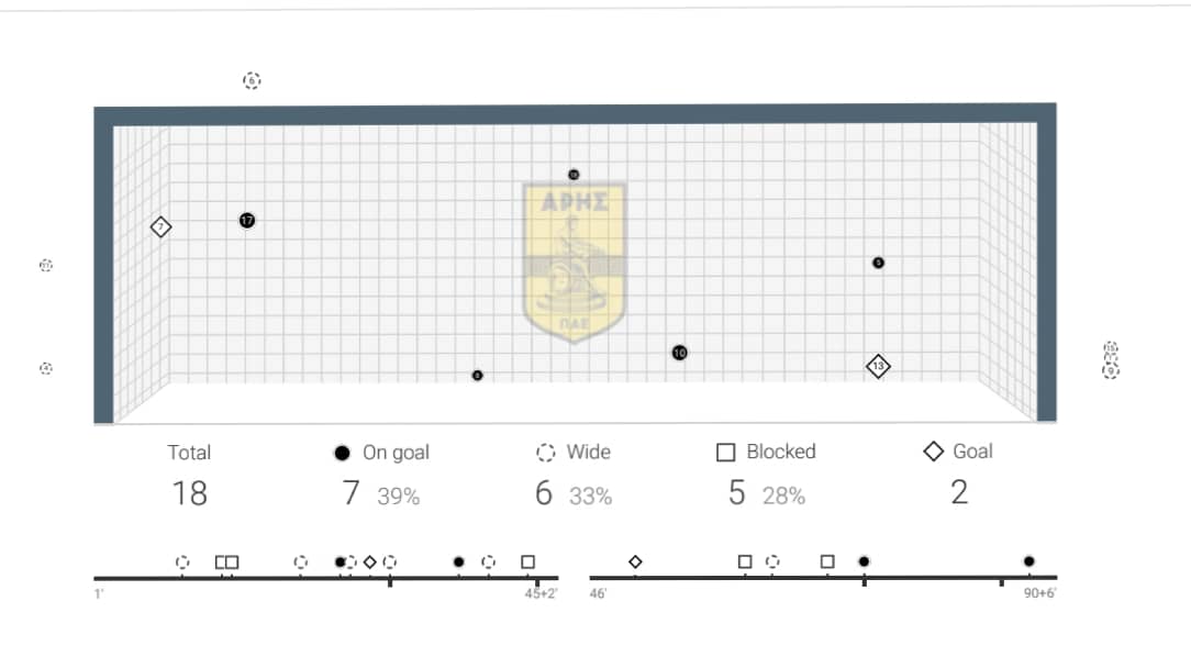 Στον παραπάνω δείκτη με τα xG , ο ΑΡΗΣ έμεινε στο φτωχό 0,47 ενώ είναι χαρακτηριστικό ότι στο δεύτερο ημίχρονο δεν απείλησε σχεδόν καθόλου με τον δείκτη να φτάνει στο 0,04.