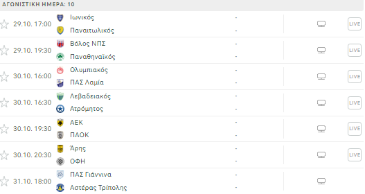 Πρόγραμμα 10ης αγωνιστικής: