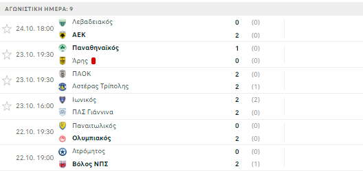 Τα αποτελέσματα της 9ης αγωνιστικής: