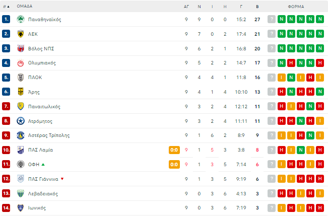 Στο -4 ο Ολυμπιακός (17β.) και στο -5 ο ΠΑΟΚ (16β.) τον οποίο η ΑΕΚ υποδέχεται στην «Αγιά Σοφιά – OPAP Arena» την προσεχή Κυριακή (27/10, 19:00) για την 10η αγωνιστική της Super League.