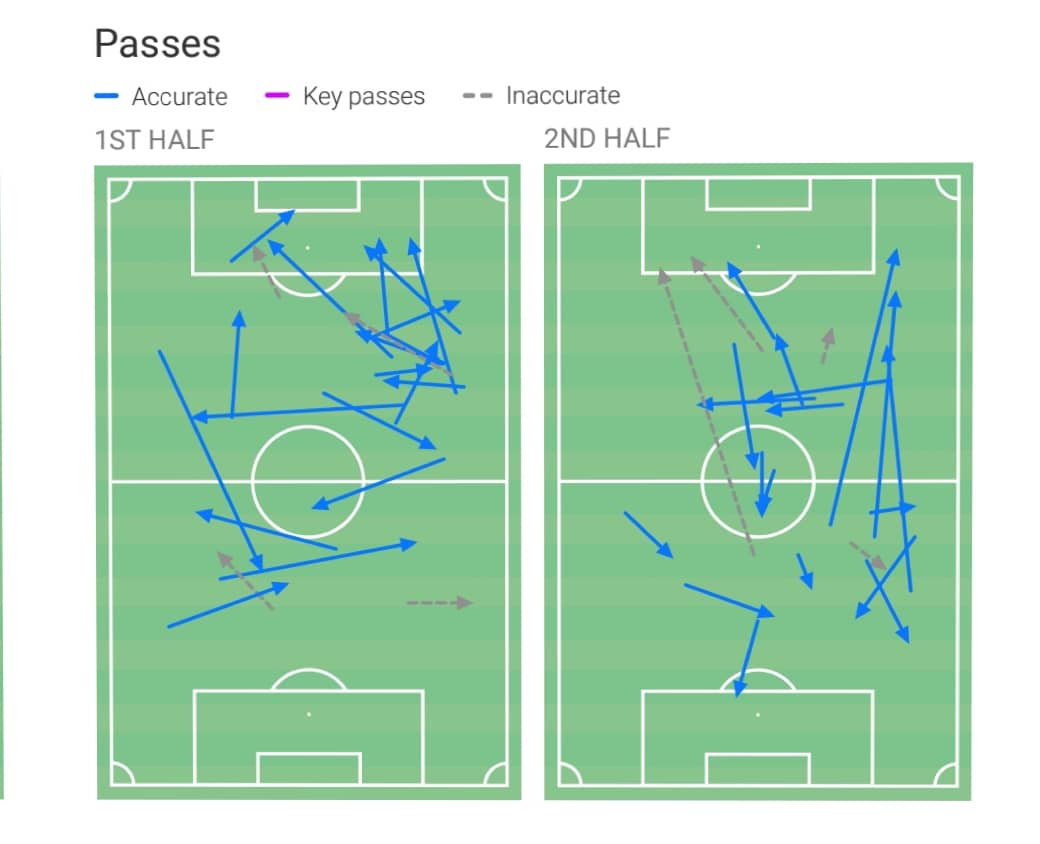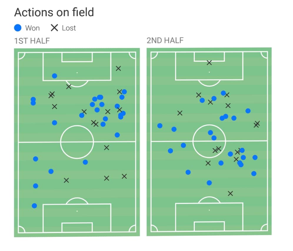 Οι ενέργειες του στο παιχνιδι σε πρώτο και δεύτερο ημίχρονο