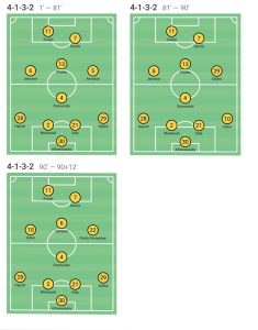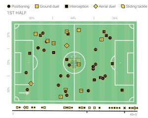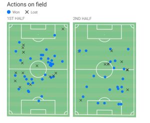 Εδώ παρατηρούμε όλες τις ενέργειες που είχε μέσα στον αγωνιστικό χώρο σε πρώτο και δεύτερο ημίχρονο.