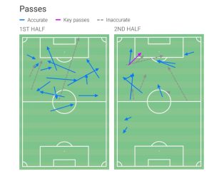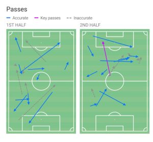 Μπορείτε να δείτε τις πάσες που άλλαξε σε πρώτο και δεύτερο ημίχρονο και την key pass στο δεύτερο ημίχρονο στο γκολ του Πινέδα.