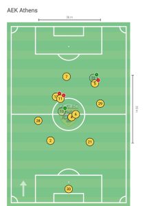 Τον χώρο όμως που πραγματικά κινούνταν οι παίκτες της ΑΕΚ μπορείτε να τον δείτε στο παρακάτω γράφημα.