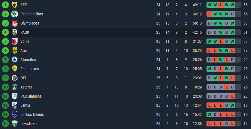 Πριν από λίγο ο ΠΑΟΚ επιβλήθηκε με 6-0 του Ιωνικού παραμένοντας στο -5 από την κορυφή έχοντας και αυτός όμως ένα ματς περισσότερο.