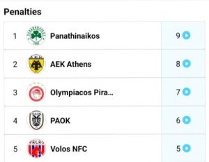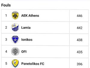Πρώτη και στα φάουλ η ΑΕΚ, ακόμη μία κατηγορία που δείχνει τον τρόπο παιχνιδιού της ομάδας λόγω της πίεσης που ασκεί.
