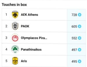 Επαφές μέσα στην περιοχή 728 για την πρώτη ΑΕΚ και 605 για τον δεύτερο ΠΑΟΚ.