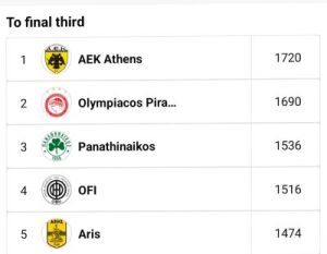 μεγάλη διαφορά από τον δεύτερο ΑΡΗ με 2282 έναντι 1960.
