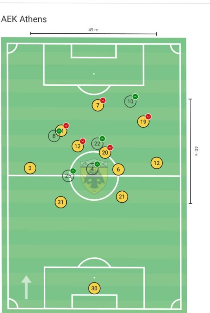 Ο σχηματισμός της ΑΕΚ σε αυτό το παιχνίδι έμοιαζε περισσότερο από κάθε άλλη φορά σε ένα