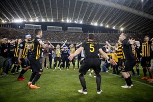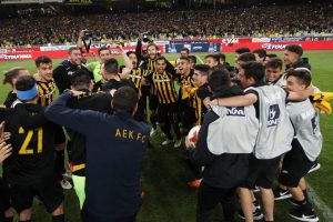 Οι ποδοσφαιριστές, ο Μανόλο Χιμένεθ, το τεχνικό του τιμ, το ιατρικό τιμ, στελέχη του ποδοσφαιρικού τμήματος, άτομα της διοίκησης, παιδιά των ακαδημιών, παιδιά των ποδοσφαιριστών, μαζεύτηκαν στη σέντρα του γηπέδου και μαζί με τον κόσμο της ομάδας, έκαναν “χέρια” και φώναζαν “ΑΕΚ” και το ΟΑΚΑ… σειόταν, κλείνοντας έτσι μια όμορφη γιορτή, μέχρι την… επόμενη.