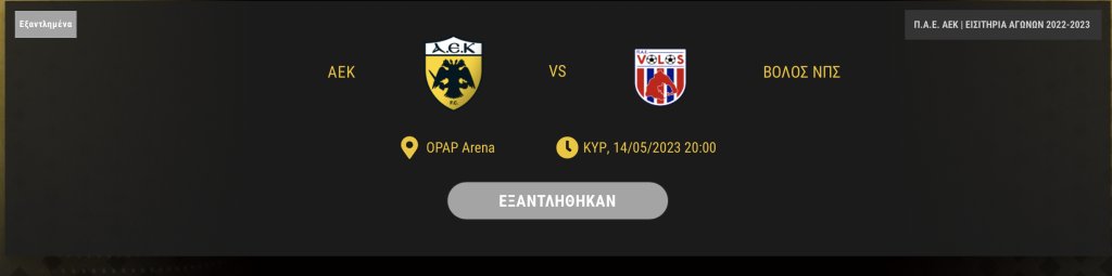 Ανάρπαστα έγιναν τα λιγοστά εισιτήρια που είχαν απομείνει για το ΑΕΚ-Βόλος της Κυριακής (14/5, 20:00), μετά το «διπλό» της Ένωσης στη Θεσσαλονίκη.