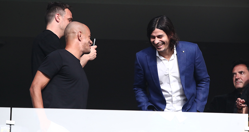 Στο πλάι τους ο διοικητικός ηγέτης της ΠΑΕ ΑΕΚ, Δημήτρης Μελισσανίδης, ενώ εγκάρδιο χαιρετισμό είχαν και με τον μεγάλο παλαίμαχο αστέρα της ομάδας, Ντέμη Νικολαΐδη.