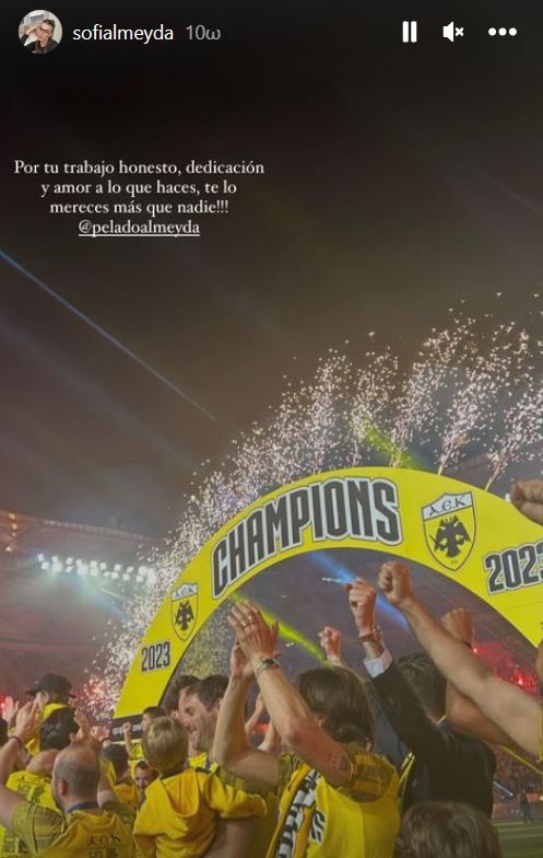 «Για την τίμια δουλειά σου, την αφοσίωση και την αγάπη για αυτό που κάνεις, το αξίζεις περισσότερο από τον καθέναν. Είσαι τεράστιος, Μάτι» έγραψε η Σοφία Αλμέιδα, πανηγυρίζοντας για τον πατέρα της και την ΑΕΚ.