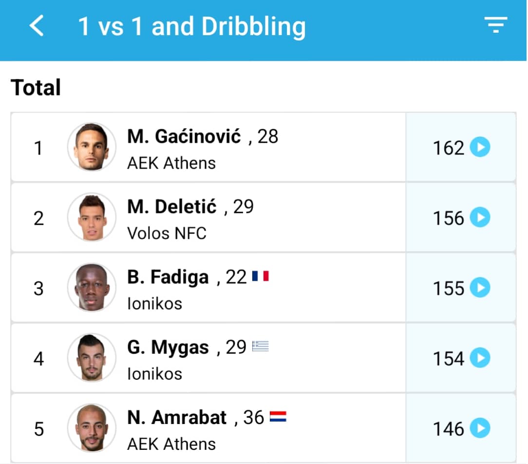 Στις υποκατηγορίες των μεταβιβάσεων, με τις μεταβιβάσεις στην πλάτη της άμυνας και τις key passes.