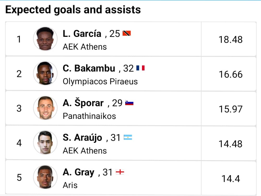 Τελευταία κατηγορία τα xG. Και εδώ βρίσκουμε τον Λιβάι Γκαρσία στην πρώτη θέση με 15,28 xG.