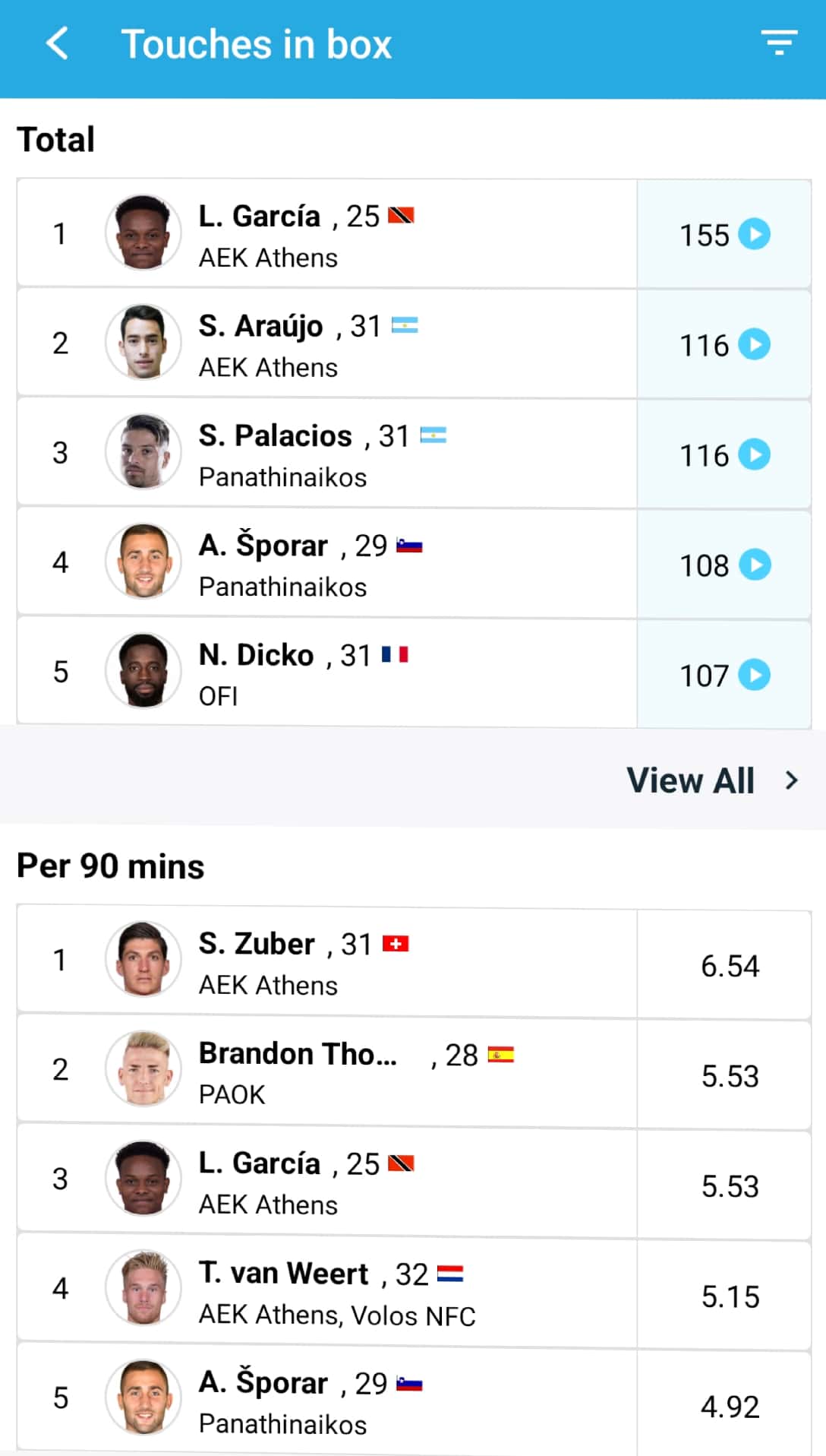 Tελευταίες δύο κατηγορίες το ένας εναντίον ενός, όπου ο δεύτερος της βαθμολογίας Παναθηναϊκός δεν είναι καν στην πρώτη πεντάδα και στις επαφές μέσα στην μεγάλη περιοχή με διαφορά 178 περισσότερων επαφών από τον δεύτερο ΠΑΟΚ και 282 από τον τέταρτο Παναθηναϊκό.