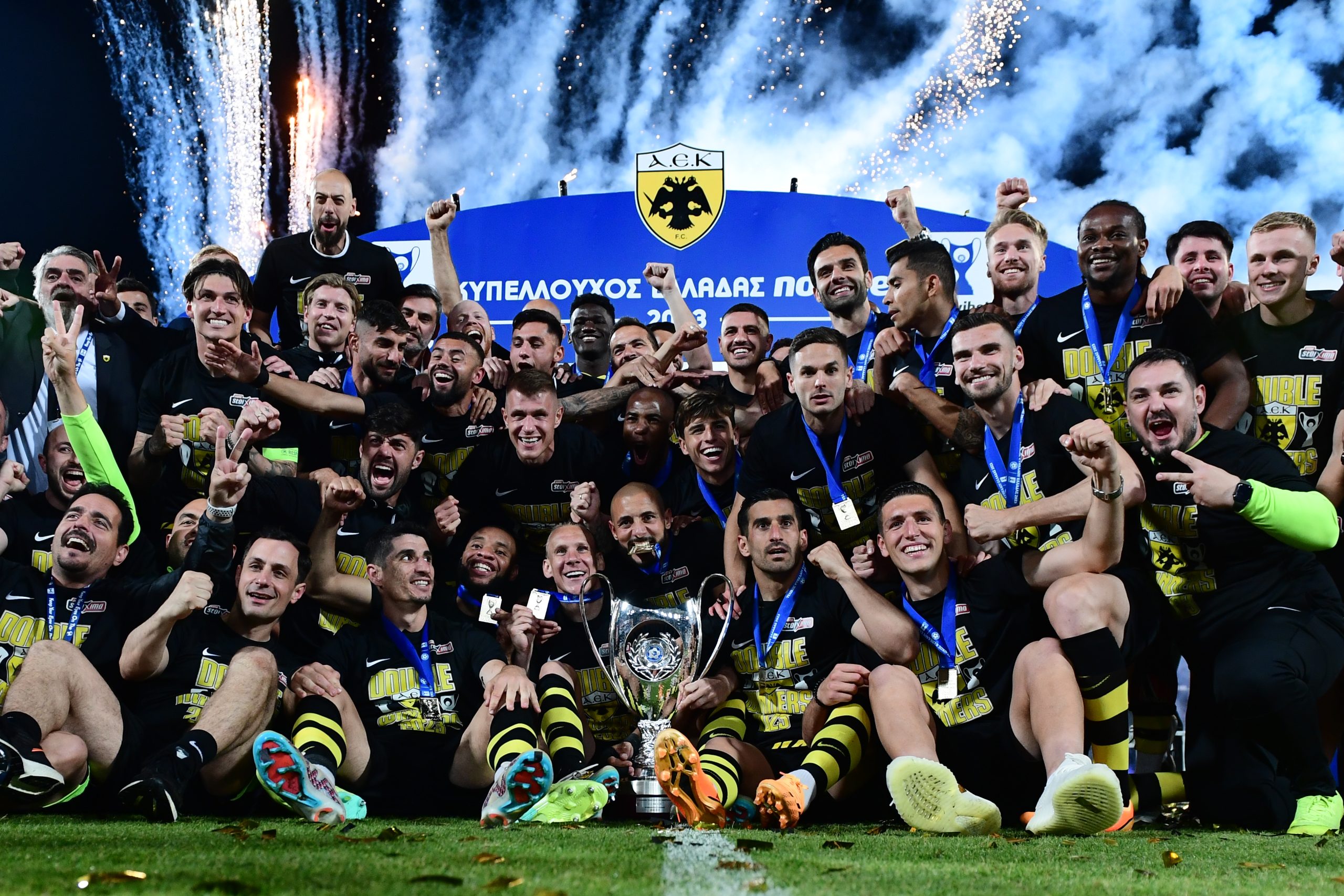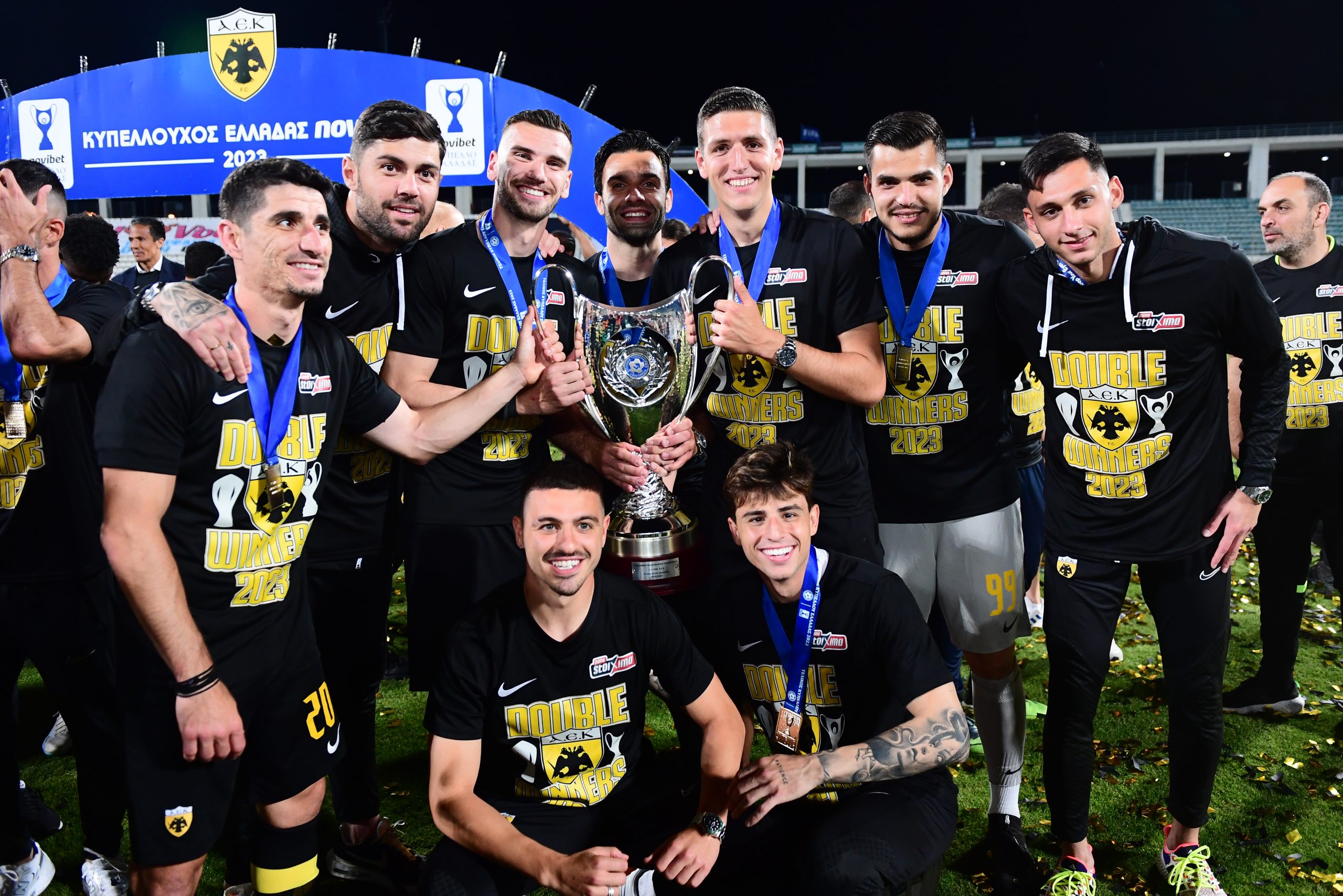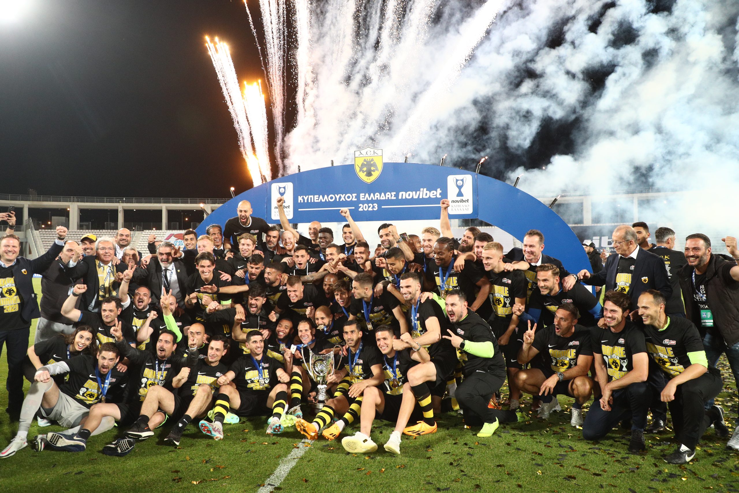 Στιγμές από την απονομή του Κυπέλλου στην καλύτερη ομάδα της σεζόν που σάρωσε όλα τα τρόπαια και είναι η Νταμπλούχος Ελλάδας για τη σεζόν 2022-2023.