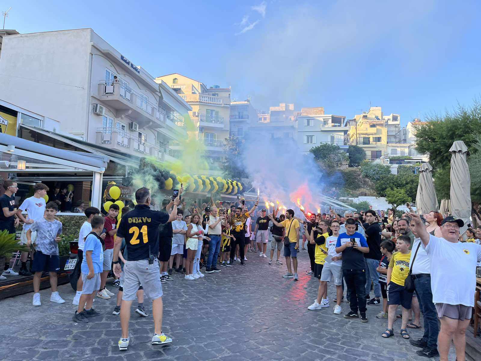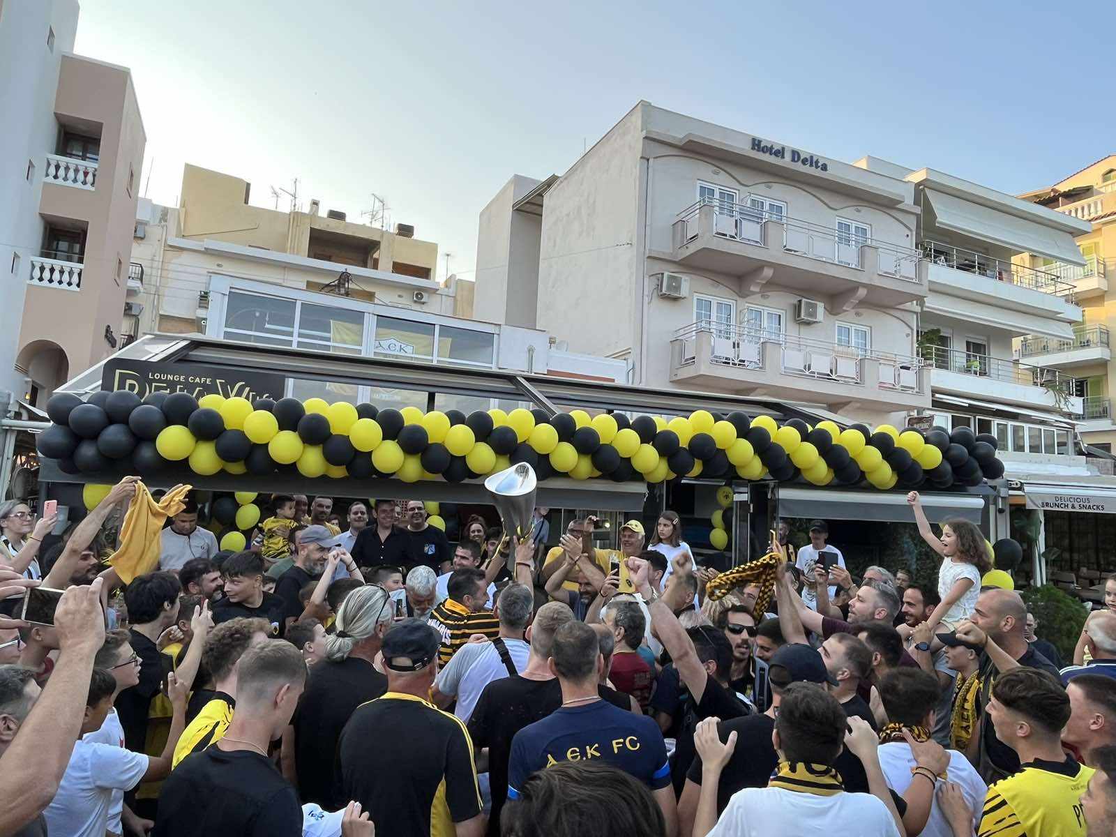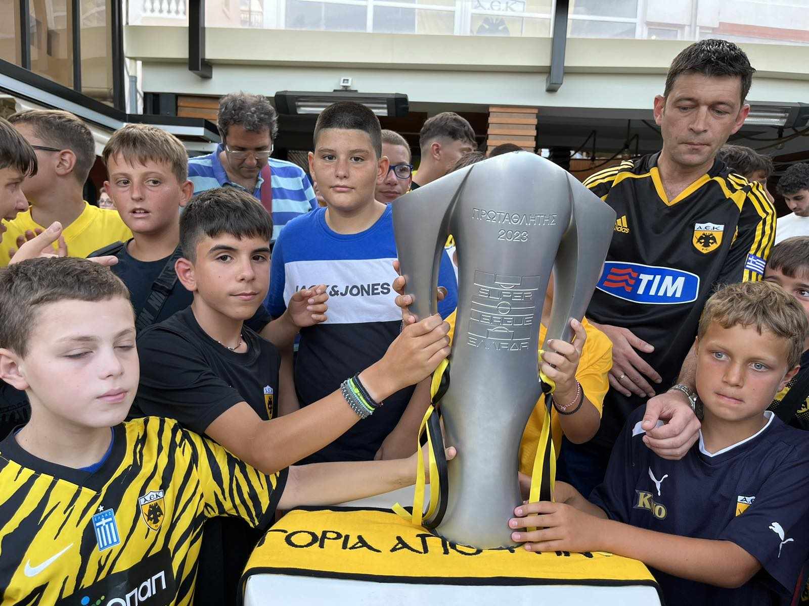 Το τρόπαιο του πρωταθλήματος που κατέκτησε η ΑΕΚ έφτασε και στο ανατολικό άκρο της Κρήτης και έγινε αντικείμενο αποθέωσης τις τελευταίες ώρες στο κεντρικότερο σημείο της πόλης.