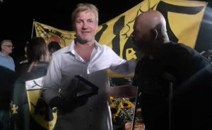 Το τρόπαιο φτάνει στο beach bar όπου πραγματοποιήθηκε η εκδήλωση με ένα σκάφος, και η νύχτα μετατρέπεται σε μέρα με την εντυπωσιακή εμφάνιση πυροτεχνημάτων και βεγγαλικών. Οι εικόνες και το βίντεο αποτυπώνουν από μόνα τους την ενθουσιώδη ατμόσφαιρα και τον ενθουσιασμό των παρευρισκομένων.