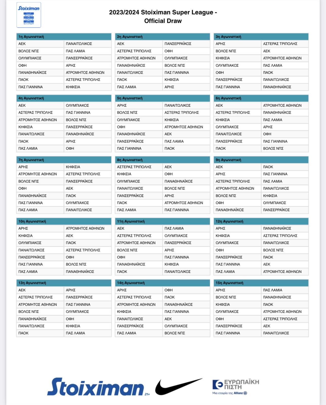 Το αναλυτικό πρόγραμμα της νέας Super League: