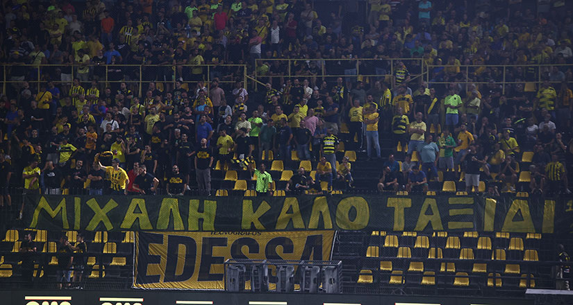 Οι φίλοι του Άρη θέλησαν να πουν το δικό τους «αντίο» στον αδικοχαμένο φίλο της ΑΕΚ, Μιχάλη Κατσούρη, σηκώνοντας ένα πανό στο ματς με την Ντιναμό Κιέβου.