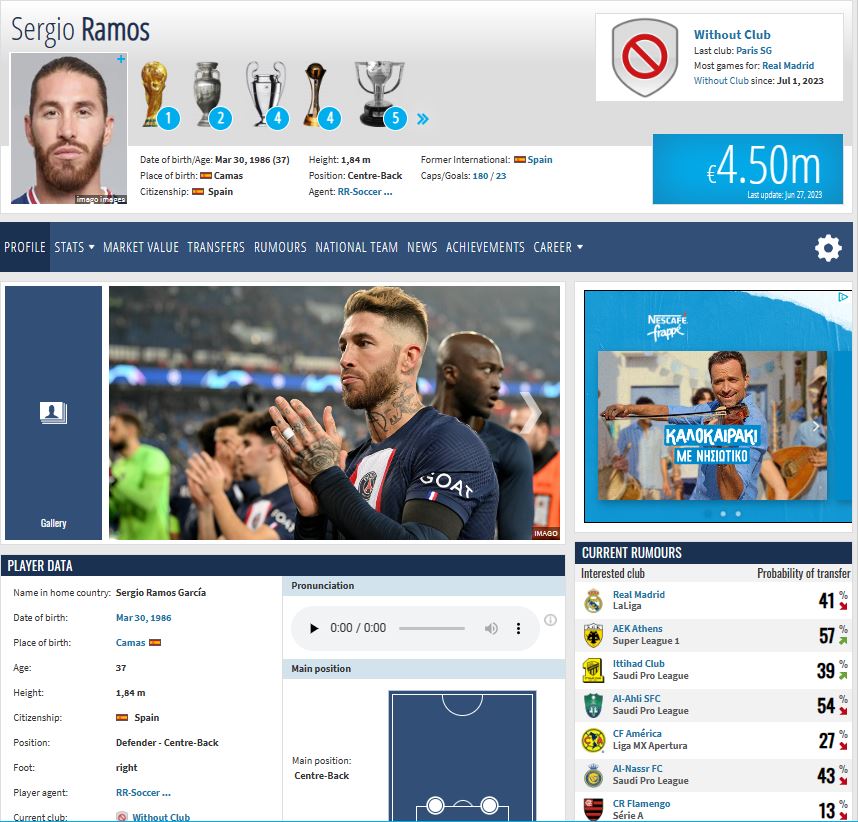 Συγκεκριμένα το γνωστό site παγκοσμίας φήμης ποδοσφαιρικών δεδομένων, δείχνει ως φαβορί για την απόκτηση του Σέρχιο Ράμος την ΑΕΚ!