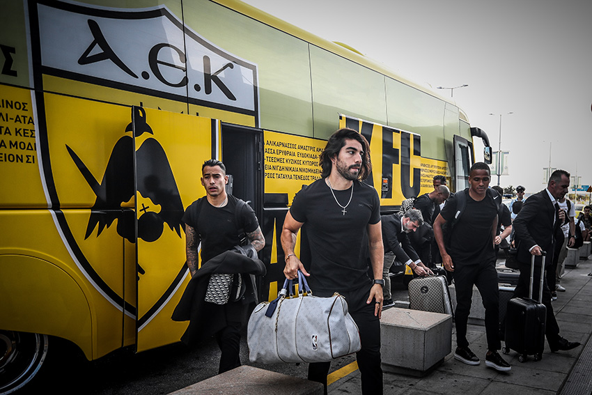 Ο Ματίας Αλμέιδα και οι ποδοσφαιριστές του έφτασαν στο «Ελευθέριος Βενιζέλος» με το πούλμαν της ομάδας περίπου στις 08:30 το πρωί της Τετάρτης, χωρίς να είναι ανάμεσά τους ο Ντομαγκόι Βίντα ο οποίος έχει τραυματιστεί στα πλευρά, αλλά και ο Αρόλντ Μουκουντί ο οποίος εισήχθη το απόγευμα της Τρίτης στο νοσοκομείο με λοίμωξη.