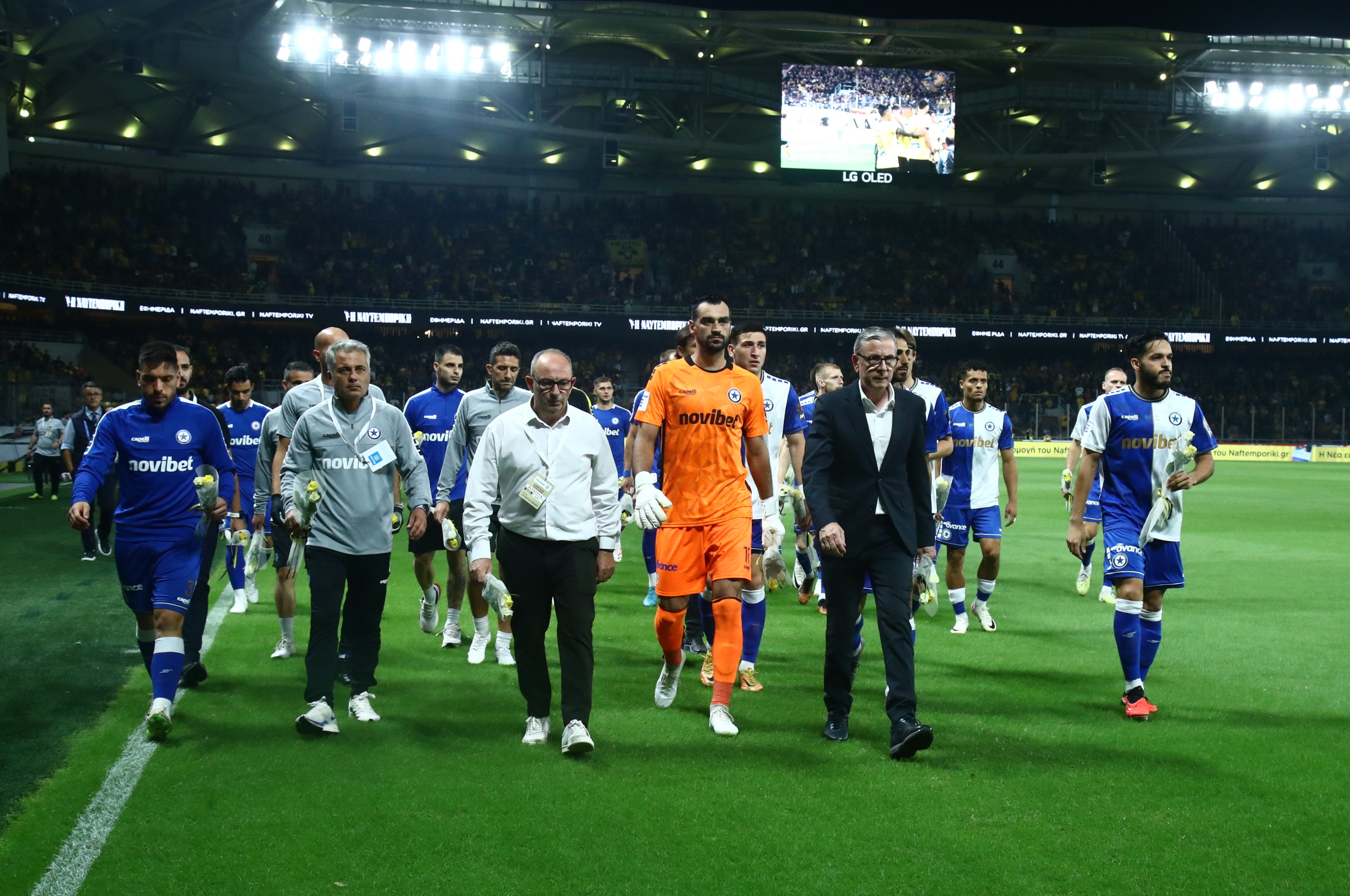 Συγκεκριμένα, μετά την είσοδό τους στον αγωνιστικό χώρο και τον τυπικό χαιρετισμό μεταξύ των δύο ομάδων, οι σύσσωμοι οι Περιστεριώτες πήγαν και άφησαν τριαντάφυλλα μπροστά από τη Θύρα 21 στη μνήμη του Μιχάλη Κατσούρη που δολοφονήθηκε.