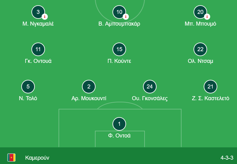 Δείτε αναλυτικά την 11άδα του Καμερούν.