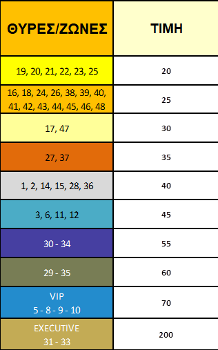 Αναλυτικά οι τιμές των εισιτηρίων ανά θύρα: