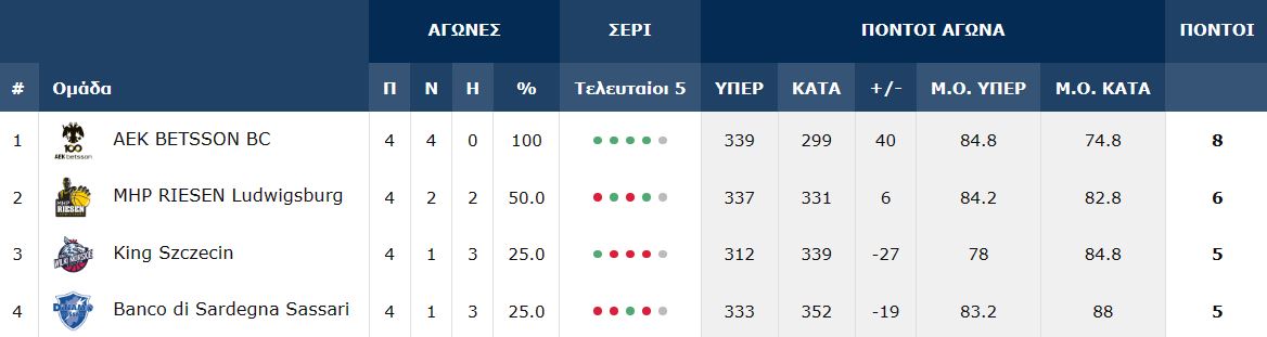 Με την -μαθηματική- κατάληψη της 1ης θέσης του ομίλου, η AEK Betsson BC θα… πηδήξει τον γύρο των play-in και θα «τσεκάρει» το εισιτήριο για τους «16» της ευρωπαϊκής διοργάνωσης.