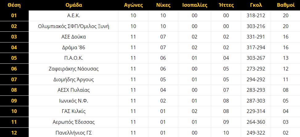 Η βαθμολογία της Handball Premier: