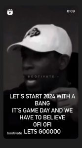 «Ας ξεκινήσουμε το 2024 μ’ έναν κρότο. Είναι μέρα αγώνα και πρέπει να πιστέψουμε στην ομάδα. ΟΦΗ ΟΦΗ, εμπρός πάμε», έγραψε στο ποστ του.