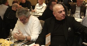 Το εστιατόριο «Βυζαντινό»… τίγκαρε από τον προσκεκλημένο κόσμο των Παλαίμαχων της ΑΕΚ και η εκδήλωση ντύθηκε μουσικά (και) από τον Πάνο Κιάμο που ξεκίνησε το γλέντι από τον ύμνο της ΑΕΚ.