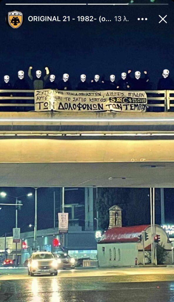 Η Original ύψωσε πανό με ένα ηχηρό μήνυμα για τις τελευταίες εξελίξεις σχετικά με την υπόθεση των Τεμπών τον Ηλία Μίχο και την τιμωρία των οπαδών