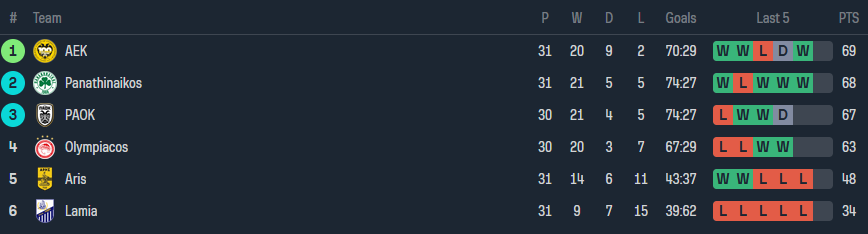 Νωρίτερα ο Παναθηναϊκός νίκησε εύκολα με 3-1 τη Λαμία στη Λεωφόρο και βρίσκεται προσωρινά στην δεύτερη θέση του βαθμολογικού πίνακα.